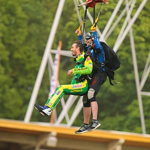 Wczoraj "Tajski" też spadł z nieba na wrocławski stadion - za sprawą skoku ze spadochronem, w tandemie. Na podobny krok, korzystając ze spadochronu zdecydowało się czterech innych zawodników, m.in. Chris Holder, Jaimon Lidsey, Robert Lambert.