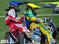 Drugi bieg zakończył się wypadkiem i na torze pojawił się ambulans. Do kolizji doszło na wyjściu z pierwszego wirażu. Atakujący po krawężniku Oliver Buszkiewicz nagle stracił panowanie nad motocyklem, gdy poderwało mu przednie koło. Bydgoszczanin zahaczył rywala i obaj polecieli na tor. Buszkiewicz "wkręcił" się w motocykl, który odbijał się po torze i niewiele brakowało, by sprzęt wylądował za ogrodzeniem.
